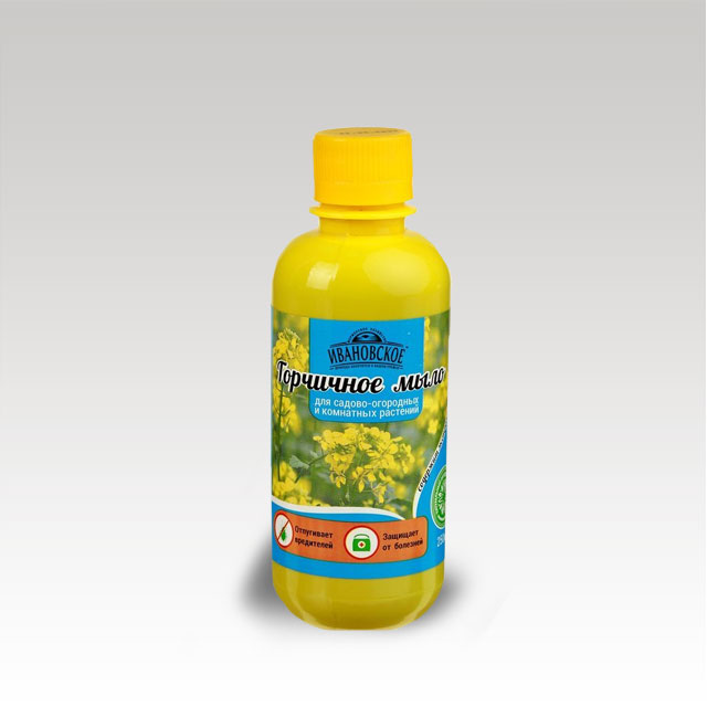 При добавлении к пестицидам: приготовьте рабочий раствор пестицида, влейте в него 25–70 мл горчичного мыла на 10 л вещества. Тщательно перемешайте. Проводите обработку в соответствии с инструкцией к пестициду.